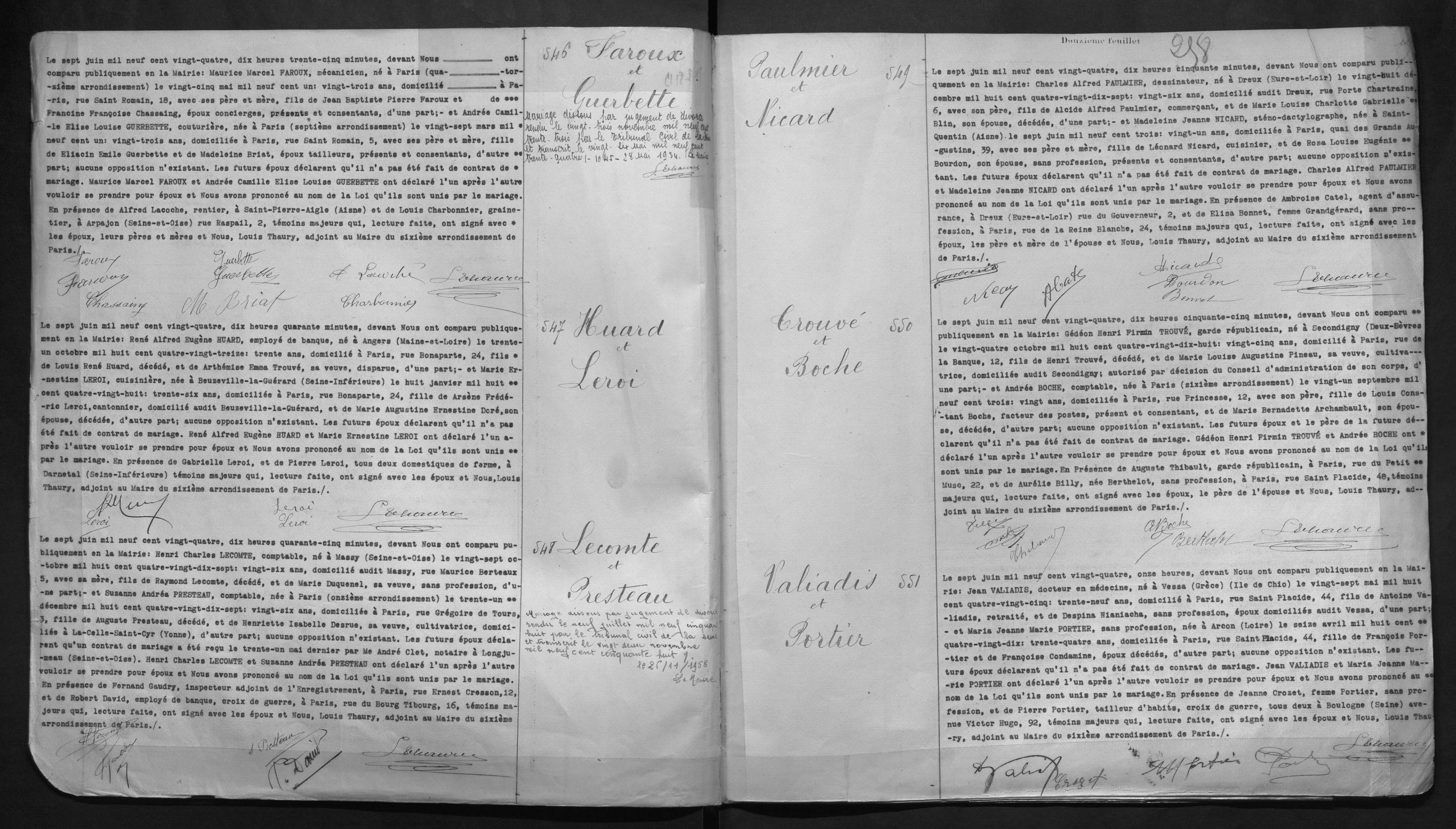 Source : Archives de Paris. 6e arrondissement, mariages 1924,